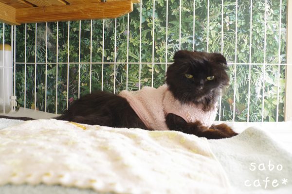 1日2回は投薬やら傷口のカットバン交換、ブラシ、蒸しタオル等でケージから出すが。