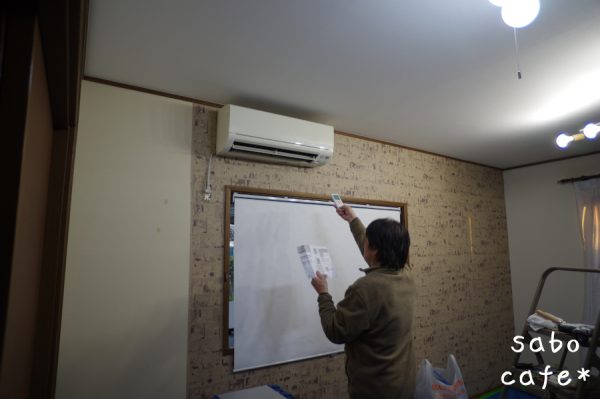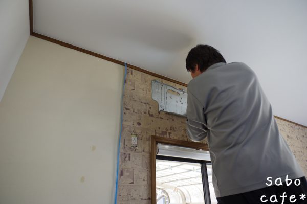で、今回の壁紙はエアコンと柄合わせで苦戦した。。。