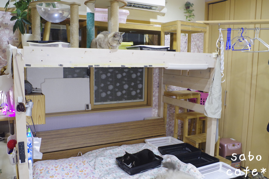 りぃちゃんはココが今お気に入り。。。。 他、モブくん、まちゃるくんも上空にゃんもっく好きだね。。。 たぶん上が暖かいからだと思う。。。 そして高知県すっごく冷えた。。。 バルコニーのビオトープに氷が張ってたり。。。