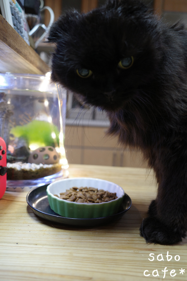 うちの朝食はウェットなんです。。。 ってことで食べない子も居るけど。。。 食べたい子だけ食べてます。。。 んで、下腹完全に舐めり倒してハゲてるみゃびたん。。。 動きは良好。。。 下痢止めは必要。。。 ドライも食べ