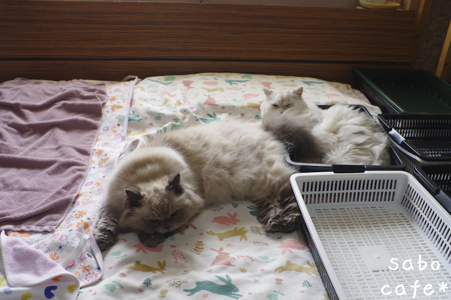 10歳のもあたんだよー。。。 今日は枕の上部占拠してたわ。。。。 ちょっと肌寒いね。。。。 まりたんも交代で枕の上部で寝てたし。。。 掛布団の上はりぃなとモブリで近場にはまちゃる、なずな、かのん、みゃびたん。。。