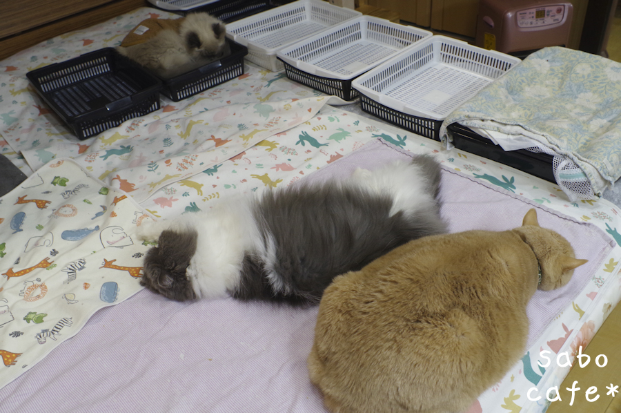 監視しながら観葉植物を飾っています。。。 一応モブくんも鑑賞中。。。。 と、油断してるとかじられるので注意っ!!。。。 でもウチ12にゃんず居るけどね。。。 観葉植物かじるのはモブくんとみゃびたんの2にゃんずだから。。。